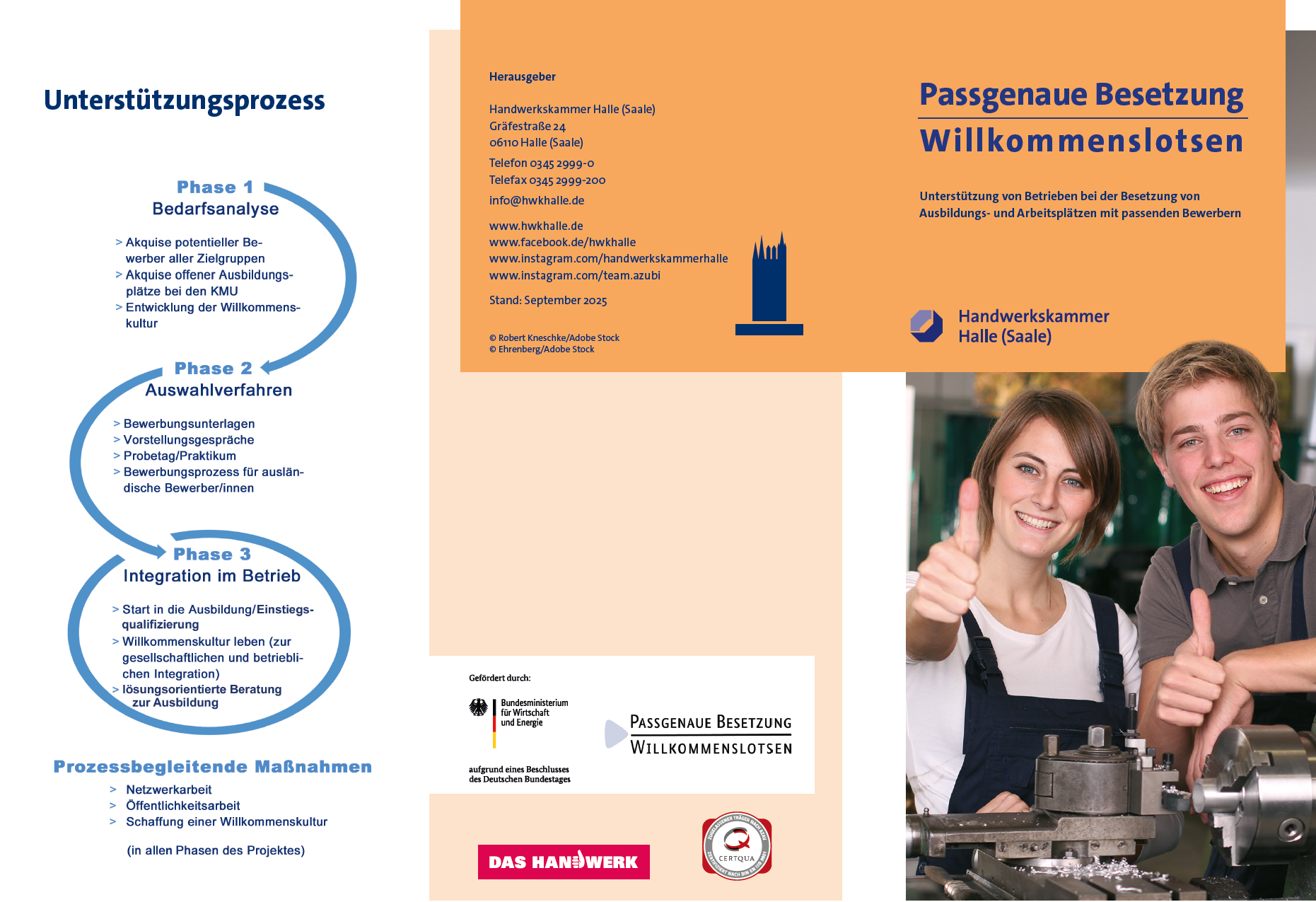 Bitte schauen Sie auf unsere Website www.hwkhalle.de in unsere Lehrstellen- und Praktikumsbörse und sprechen Sie uns für weitere Angebote persönlich am 12.09.2025 oder telefonisch unter 0172 3633513 direkt an.